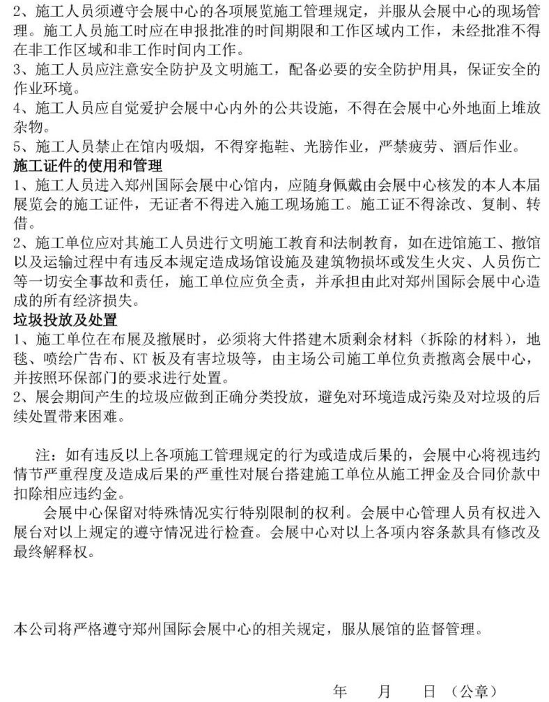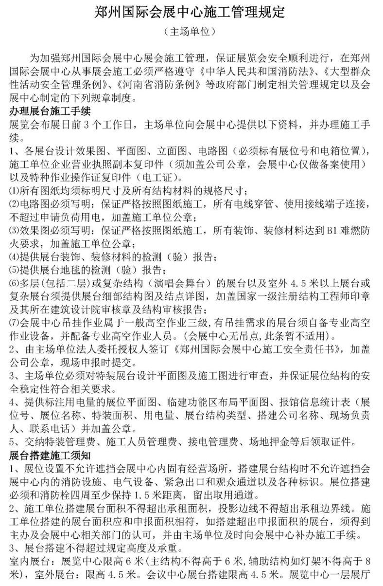 首頁(yè)服務(wù)指南主辦指南文章詳情 文章詳情 施工管理規(guī)定(主場(chǎng)單位) 設(shè)計(jì)搭建 《鄭州國(guó)際會(huì)展中心施工管理規(guī)定(主場(chǎng)單位)》文檔下載