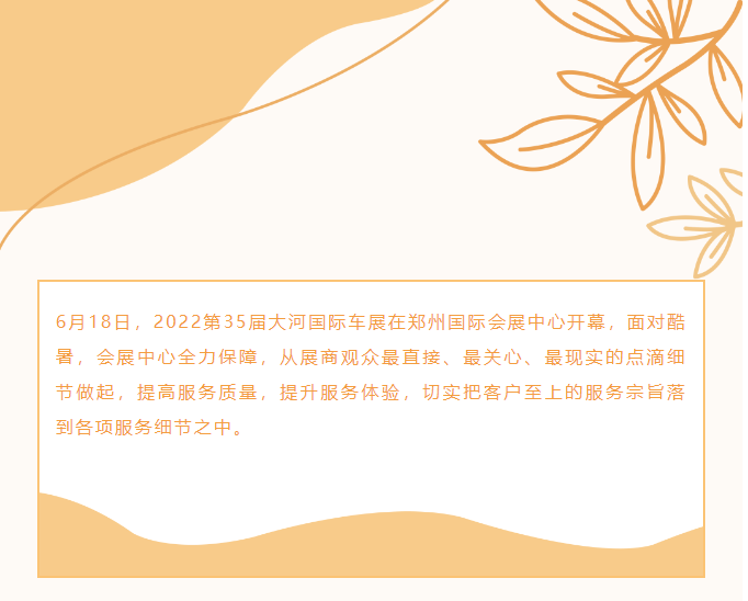 首頁新聞中心展會新聞文章詳情 文章詳情 用心服務(wù)每一展 6月18日,2022第35屆大河國際車展在鄭州國際會展中心開幕,面對酷暑,會展中心全力保障,從展商觀眾最直接、最關(guān)心、最現(xiàn)實(shí)的點(diǎn)滴細(xì)節(jié)做起,提高服務(wù)質(zhì)量,提升服務(wù)體驗(yàn),切實(shí)把客戶至上的服務(wù)宗旨落到各項(xiàng)服務(wù)細(xì)節(jié)之中。