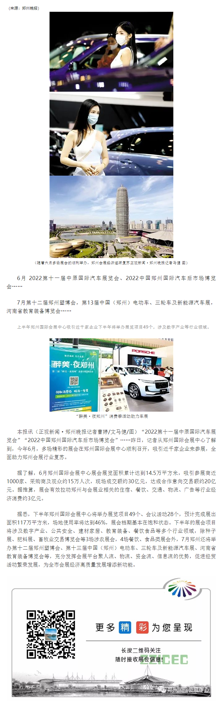 首頁新聞中心展會新聞文章詳情 文章詳情 【轉(zhuǎn)載】會展經(jīng)濟(jì)按下快進(jìn)鍵 據(jù)了解,6月鄭州國際會展中心展會展覽面積累計達(dá)到14.5萬平方米,吸引參展商近1000家、采購商及觀眾約15萬人次,現(xiàn)場成交額約30億元,達(dá)成合作意向交易額約20億元。據(jù)推算,展會有效拉動鄭州與會展業(yè)相關(guān)的住宿、餐飲、交通、物流、廣告等行業(yè)經(jīng)濟(jì)消費(fèi)約3億元。