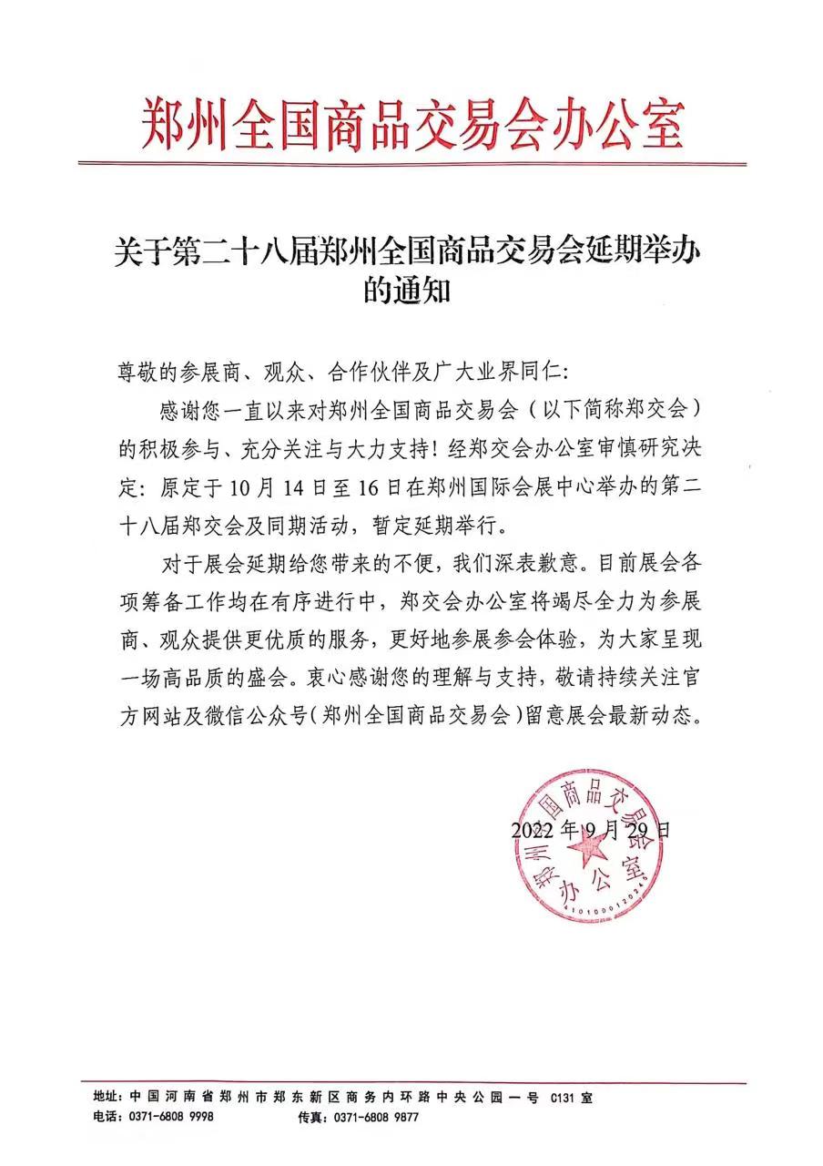 第二十八屆鄭州全國商品交易會延期舉辦