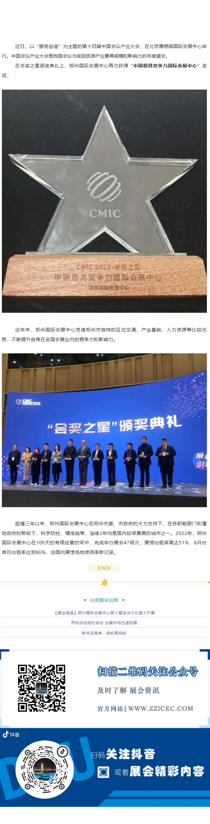 再獲中國(guó)最具競(jìng)爭(zhēng)力國(guó)際會(huì)展中心獎(jiǎng)項(xiàng)