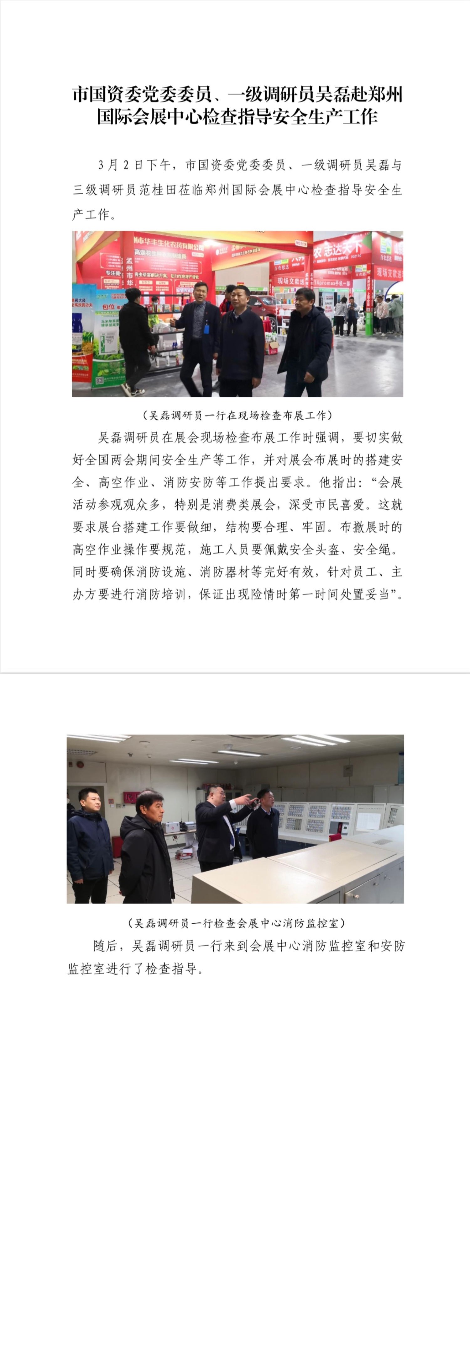 市國資委黨委委員、一級調(diào)研員吳磊赴鄭州國際會展中心檢查指導安全生產(chǎn)工作