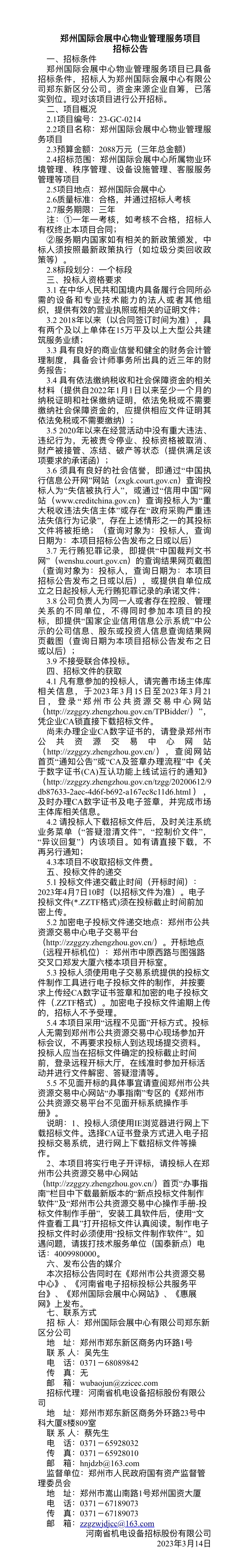 鄭州國際會展中心物業(yè)管理服務(wù)項目 招標公告