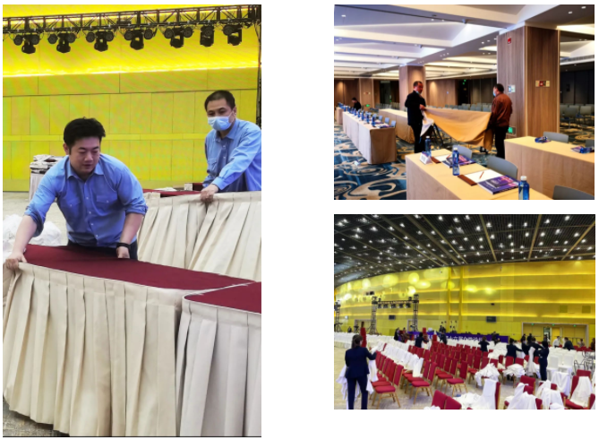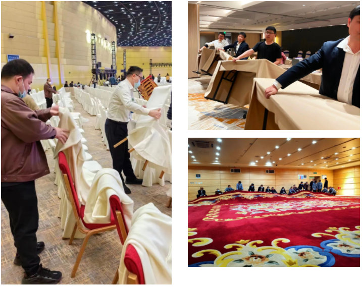 開幕式暨主論壇結(jié)束后,按照主辦方提出的要求,需要在短時(shí)間內(nèi)完成400余張桌子、3000余把椅子以及軒轅堂和9個(gè)會(huì)議室的翻場規(guī)整任務(wù),桌椅需要重新調(diào)整,間距需要重新測量,臺(tái)裙臺(tái)呢需要重新布置...面對時(shí)間緊、任務(wù)重的現(xiàn)實(shí)情況,公司科學(xué)組織、統(tǒng)一調(diào)配,各部門員工積極響應(yīng),迅速調(diào)動(dòng)增加近五十名員工全力參與現(xiàn)場保障,通過大家的努力及各部門之間的通力配合,三個(gè)小時(shí)精準(zhǔn)高效地完成了各項(xiàng)工作。此次大規(guī)模轉(zhuǎn)場按時(shí)按量的完成,充分體現(xiàn)了會(huì)展中心員工隊(duì)伍的凝聚力和合作意識(shí),展現(xiàn)了高標(biāo)準(zhǔn)、高質(zhì)量的服務(wù)保障水平。