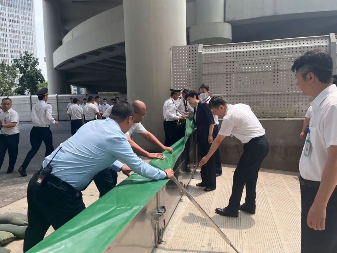 持續(xù)強降雨導(dǎo)致會議中心5-10號門出現(xiàn)積水且不斷上漲,公司根據(jù)汛情啟動Ⅱ級橙色應(yīng)急響應(yīng)。應(yīng)急隊員開展救援并用防洪板進行擋堵,工程保障部對附近區(qū)域電氣進行檢查,同時根據(jù)汛情及時關(guān)閉可能進水的設(shè)備設(shè)施。