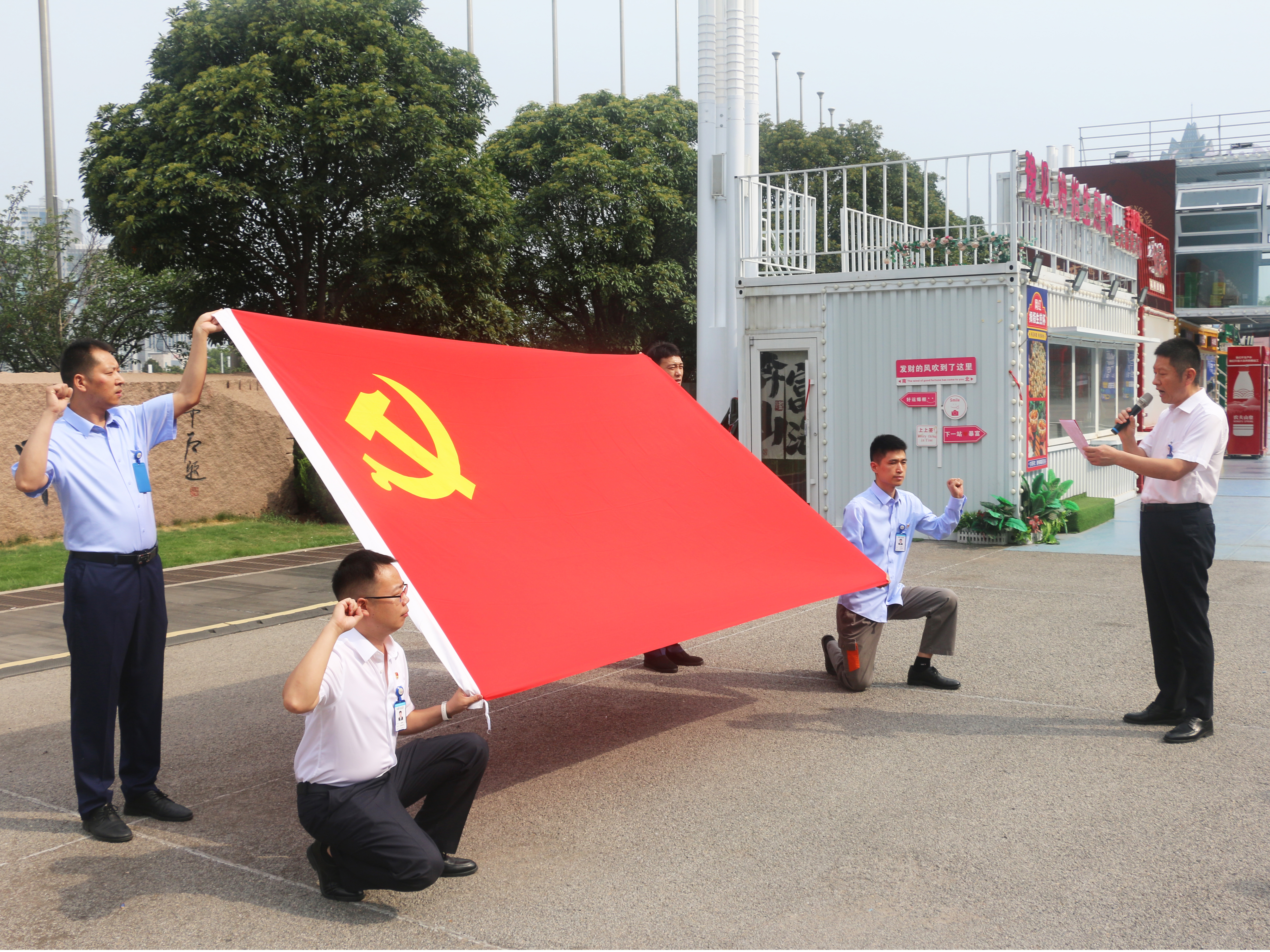2024年7月1日,正值中國共產(chǎn)黨成立103周年,鄭州國際會展中心有限公司領(lǐng)導(dǎo)及職工共計200余人在會展中心室外廣場舉行慶祝“七·一”建黨節(jié)升旗儀式,公司黨委書記、董事長黃亞賓出席儀式并發(fā)表講話,黨委副書記、董事、總經(jīng)理揭開宇主持升旗儀式。在會展中心全體員工期盼與注視下,五星紅旗伴隨著國歌冉冉升起。隨后,在黃亞賓同志的領(lǐng)誓下,公司全體黨員面對黨旗莊重宣誓。在宣誓中每位黨員對照誓詞找標準,找差距,找回當(dāng)初入黨時...