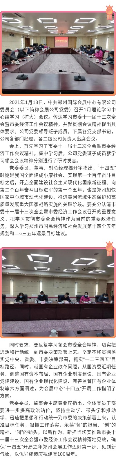 中共鄭州國際會展中心有限公司委員會 召開理論學習中心組擴大會議傳達學習市委 十一屆十三次全會暨市委經(jīng)濟工作會議精神