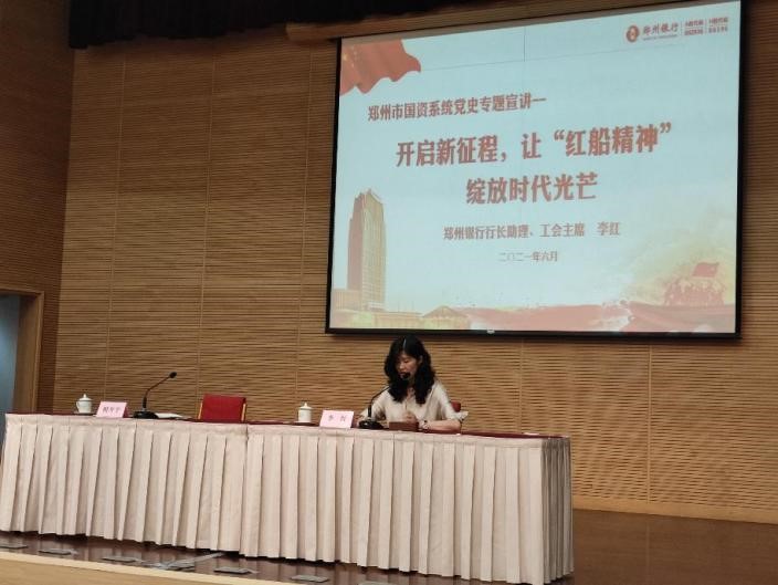 根據(jù)市國資委黨委黨史學習教育統(tǒng)一安排部署,鄭州國際會展中心有限公司黨委為在會展中心營造“學黨史、悟思想、辦實事、開新局”的濃厚氛圍,以優(yōu)異成績迎接建黨一百周年。公司黨委于2021年6月16日在鄭州國際會展中心大河廳舉行黨史專題宣講活動。 公司黨委邀請鄭州銀行助理、工會主席李紅同志為公司全體職工做了《開啟新征程,讓“紅船精神”綻放時代光芒》的主題演講。李主席以“紅船精神”為著力點,以自身工作經(jīng)歷為出發(fā)點,通...